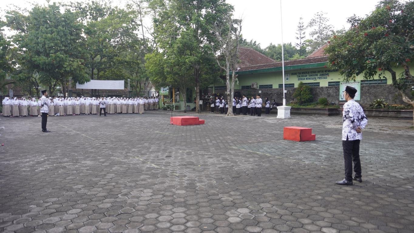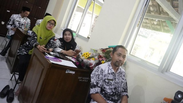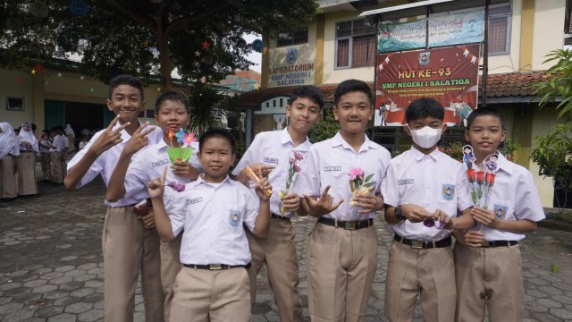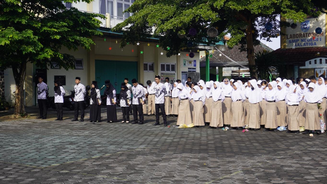 Salatiga, 25 November 2023 – Hari ini merupakan puncak peringatan hari guru nasional, tak ketinggal SMP Negeri 1 Salatiga juga turut memperingatinya. Bertempat di lapangan upacara SMP Negeri 1 Salatiga tampak tidak seperti biasanya, upacara peringatan hari guru kali ini bapak ibu guru menjadi petugas upacara dan diikuti peserta dari seluruh guru, karyawan beserta peserta didik SMP Negeri 1 Salatiga mulai pukul 07.00 s.d. 08.00 WIB.
